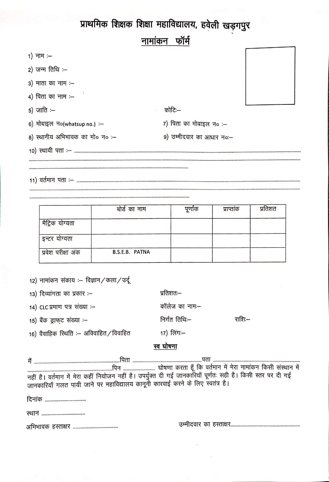 आवेदन पत्र 2025-2027 Click Here